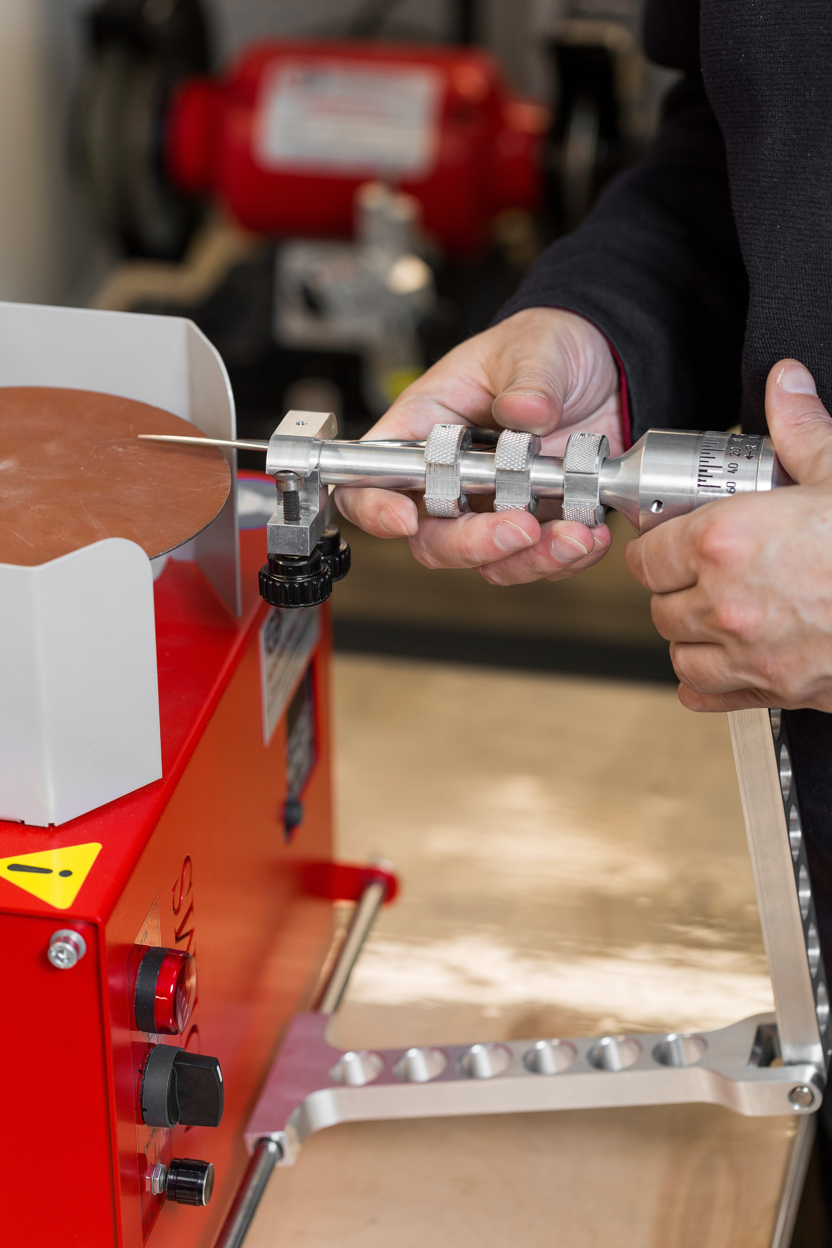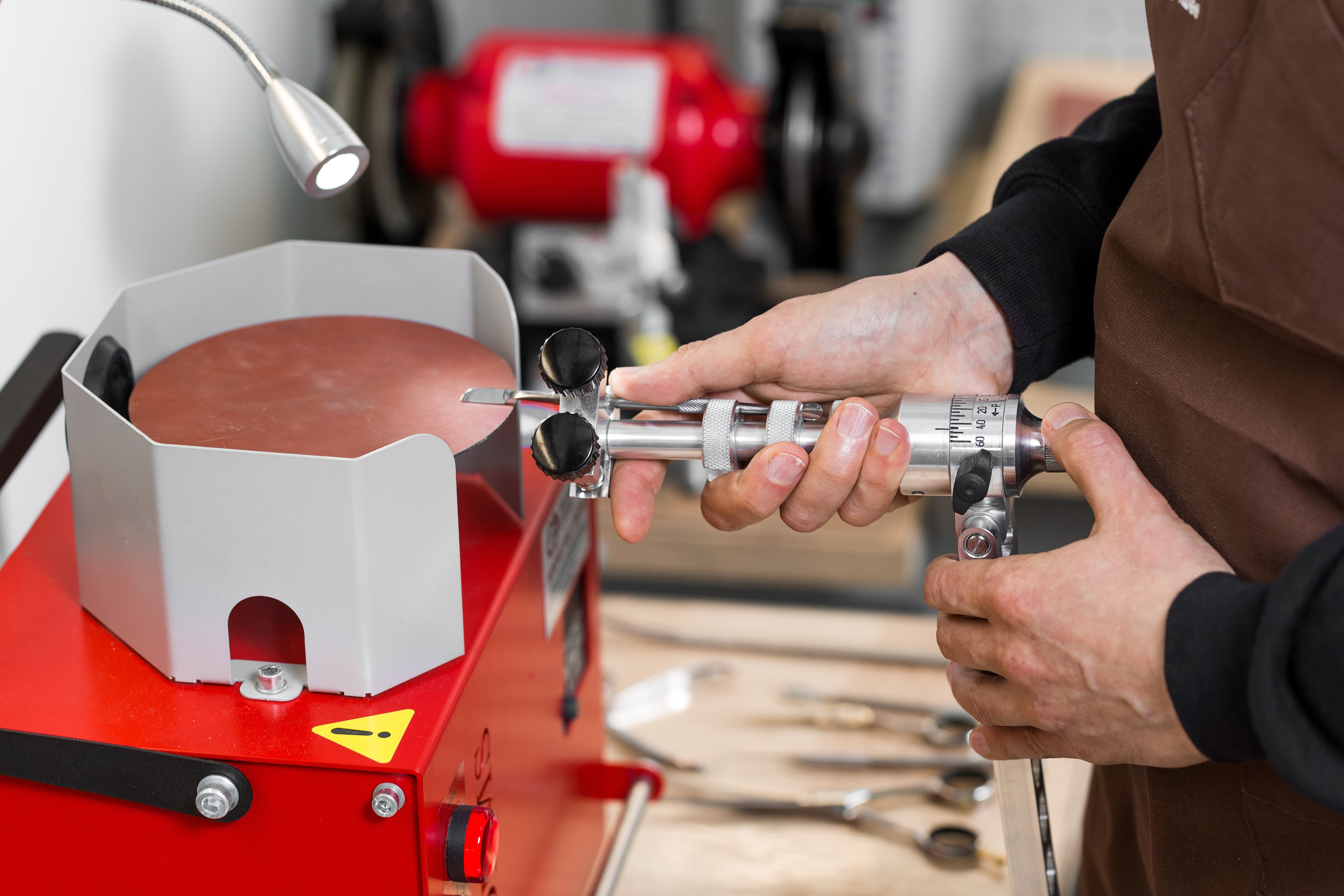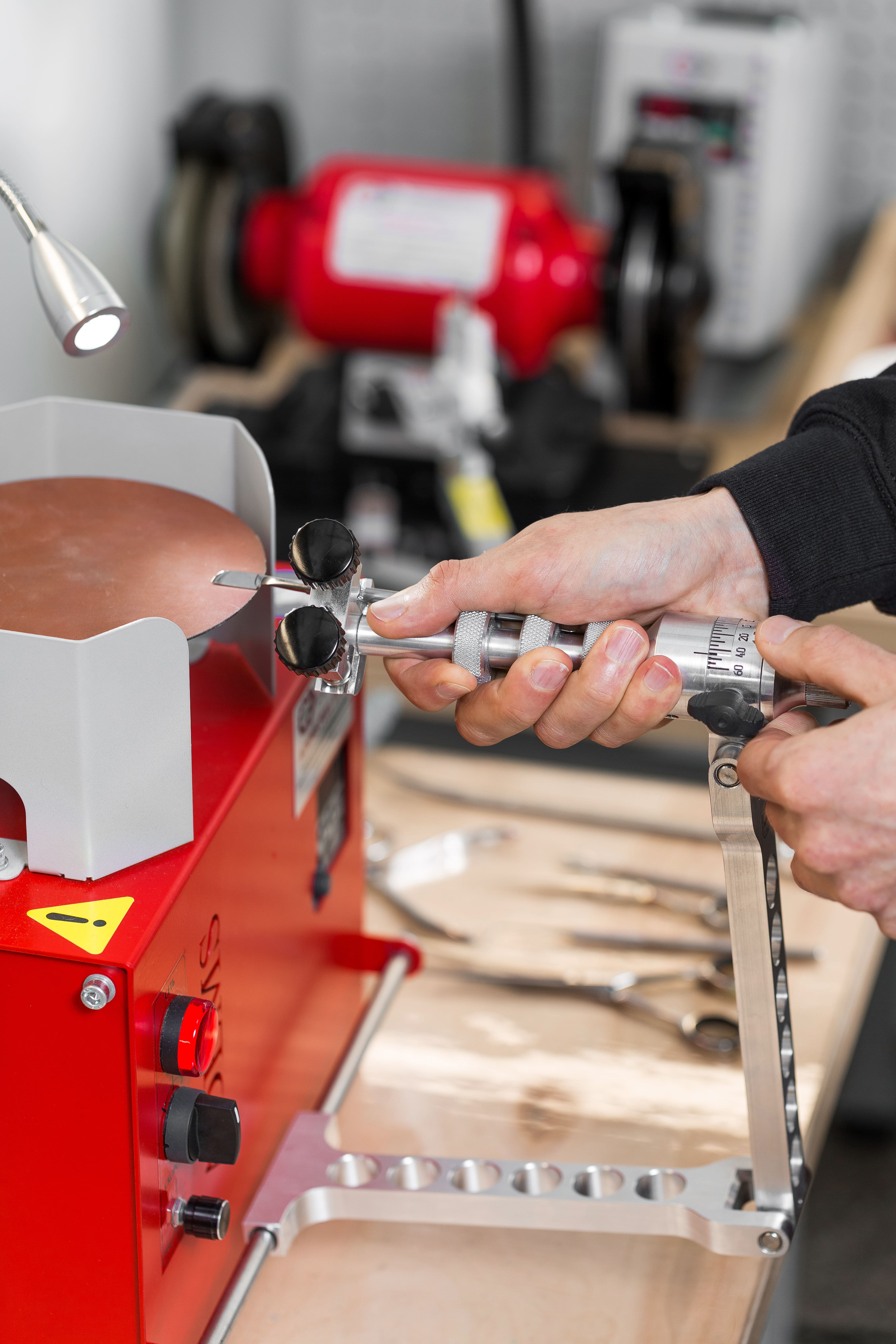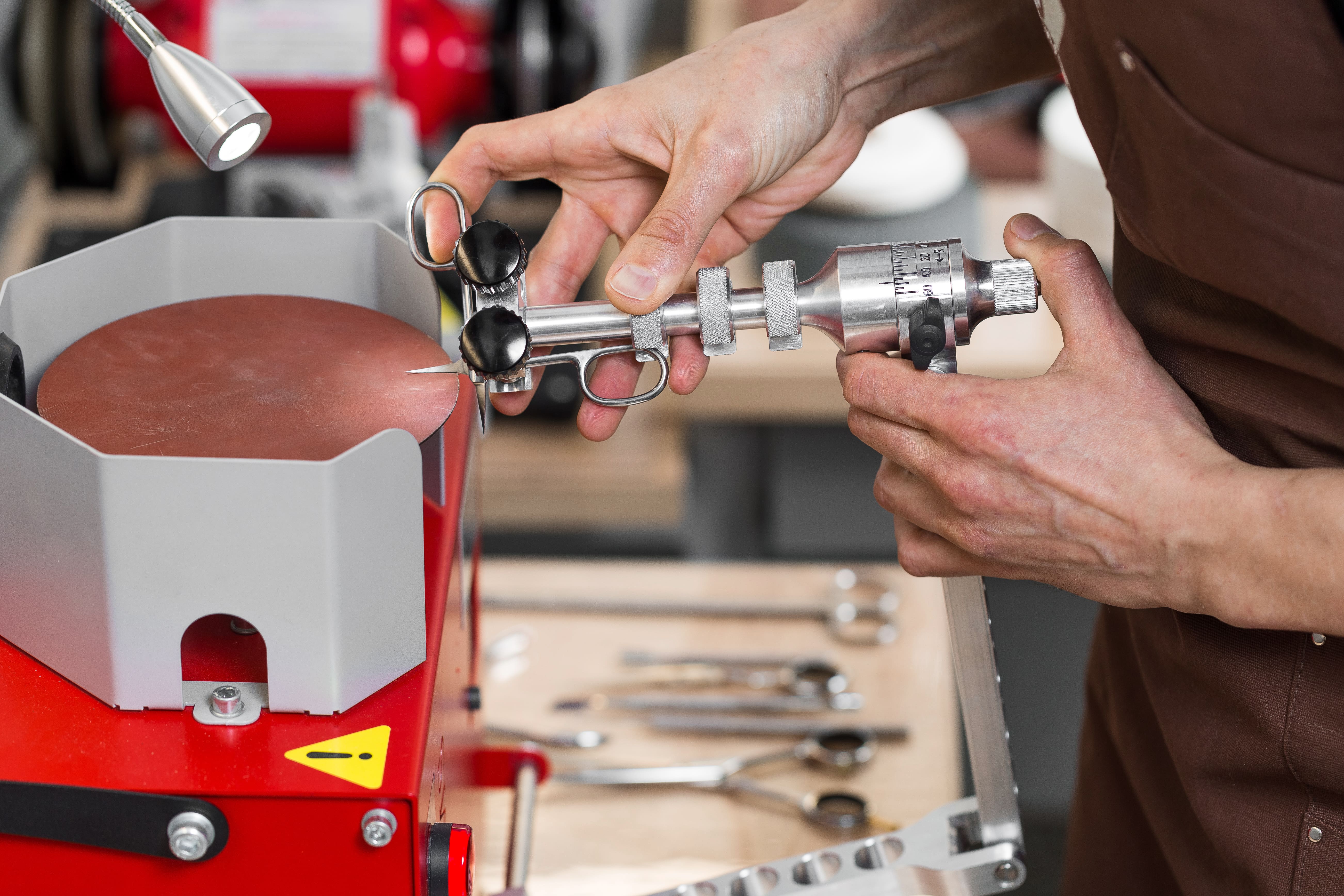 Additionally, you may need “Proof bar” for checking scissors, ”Scissors’ blade flattening”, “Metal discs” with a diameter of 125, 150 or 200 mm, to increase the number of ready-to-use abrasives and the ability to grind wider range of tools.