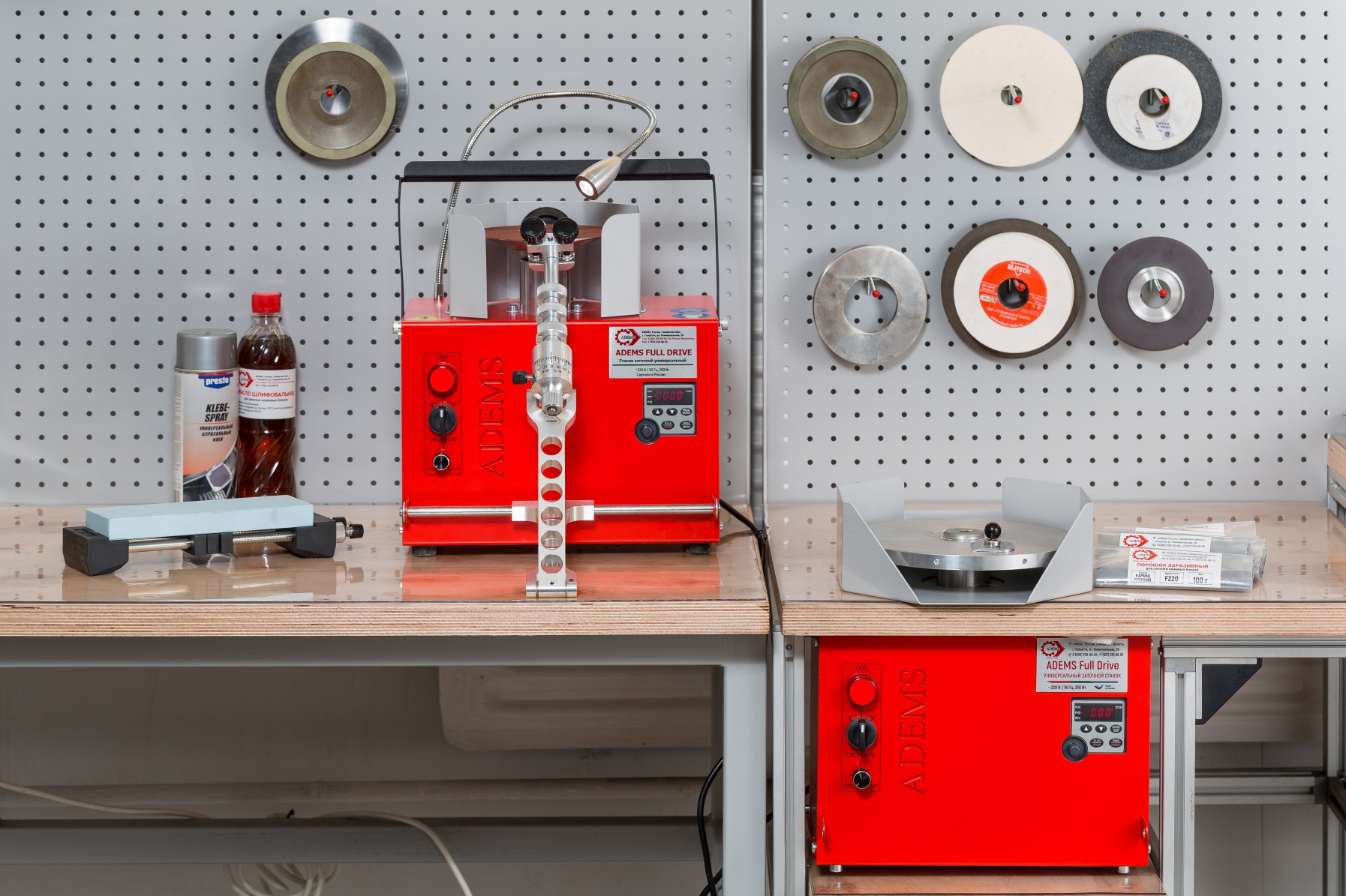 The ADEMS Full Drive is fully completed with all necessary additional and consumables. Getting the machine you get a ready-made solution for a successful sharpening business.