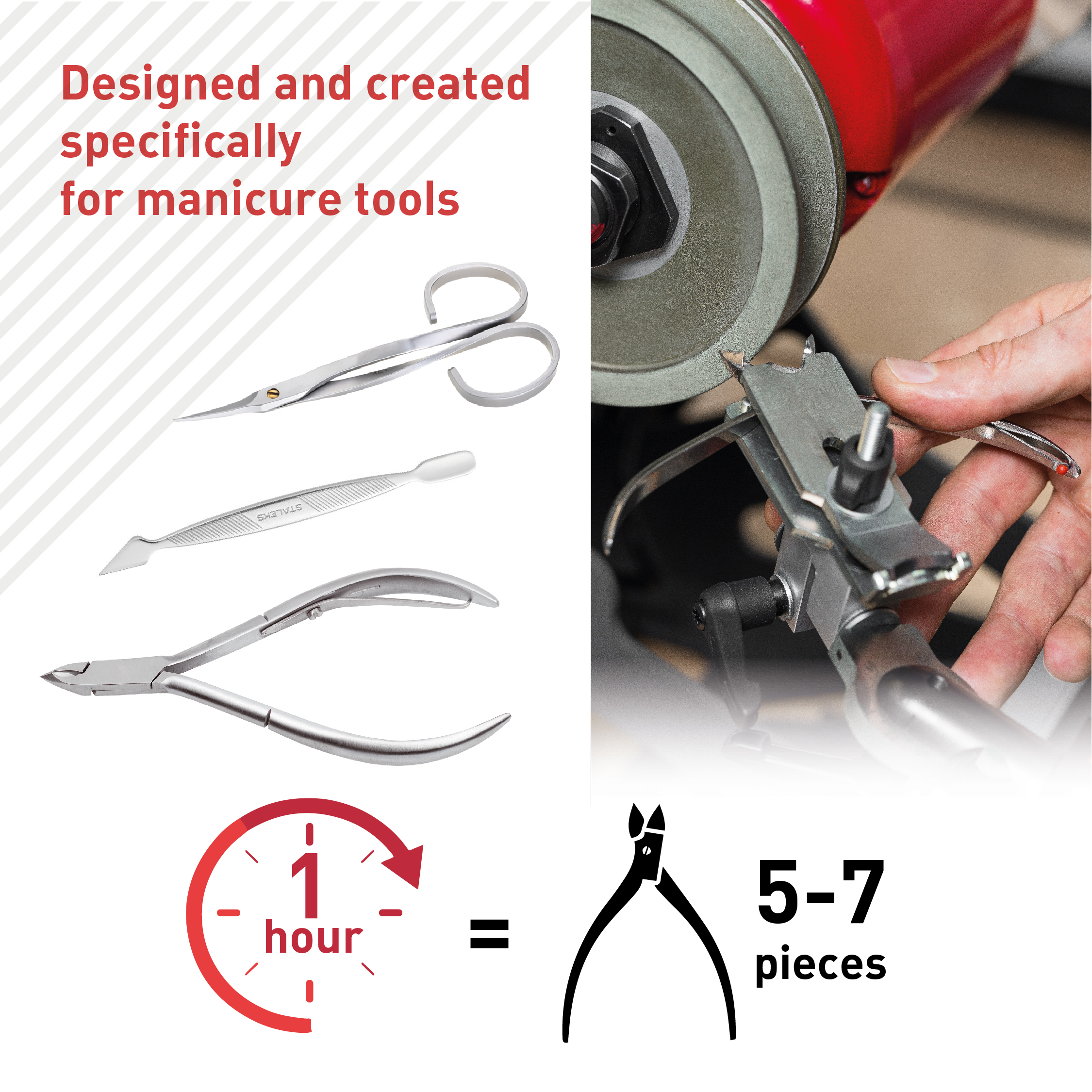 Die ADEMS GMT II ist für das Schärfen von Maniküre-, Pediküre- und medizinischen Werkzeugen konzipiert.