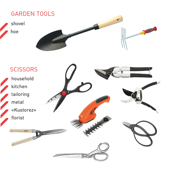 - Haushalts-, Tischler- und Gartenwerkzeuge;