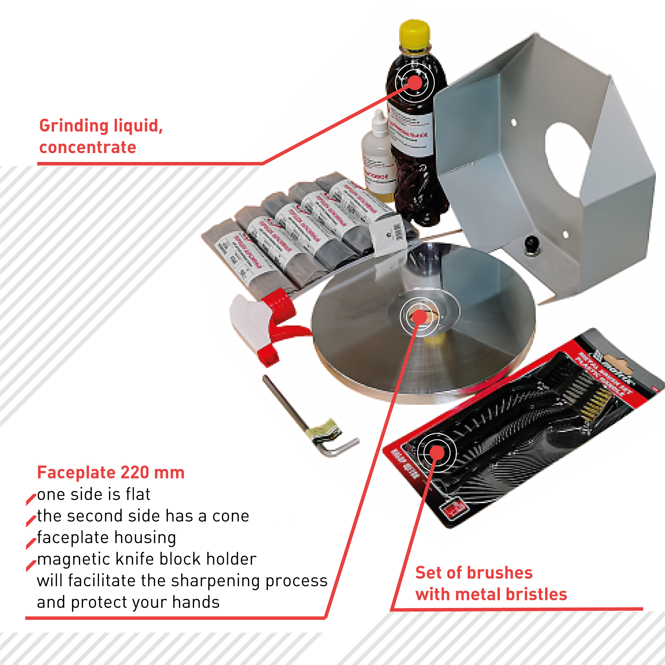 Durch den Kauf einer Maschine mit einem Set zum Schärfen von Friseurmessern erhalten Sie eine fertige Lösung für das professionelle Schärfen von Friseur- und Pflegewerkzeugen.
